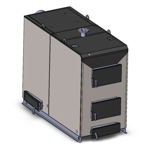 Теплообмінник котла має форму паралелепіпедного типу, має подвійні стінки, посилений ребрами жорсткості і розділений перегородками з теплоносієм. Товщина внутрішньої стінки - 6 мм, зовнішньої - 4 мм. Котел МАХ оснащений димовими каналами. Паливо засипається вручну через засипні дверцята, де після розпалу, процесом горіння керує мікропроцесорний регулятор. Він безперервно контролює температуру котла і на підставі цього визначає стан котла. В процесі роботи, мікропроцесорний регулятор за допомогою вентилятора, насичує камеру згоряння повітрям.