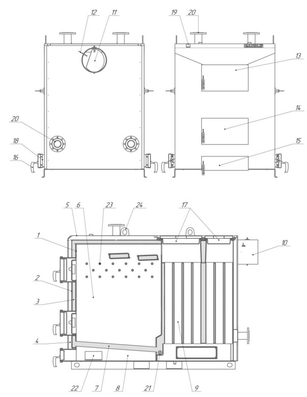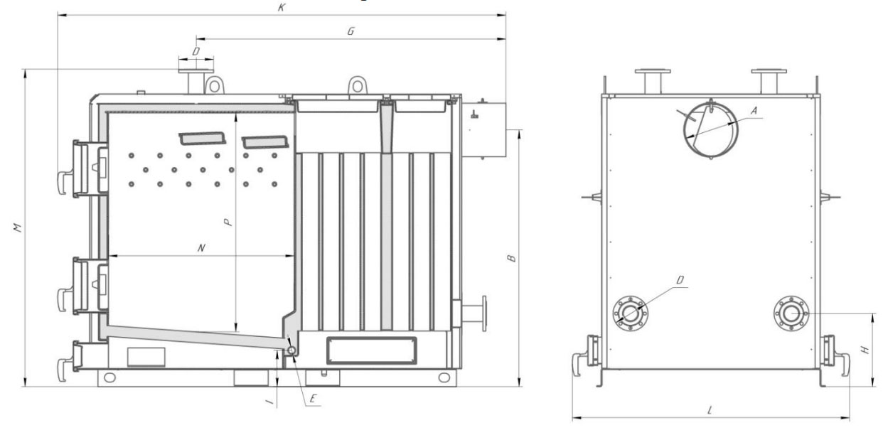 Конструкція котла Кендл Макс та габарити в розрізі: