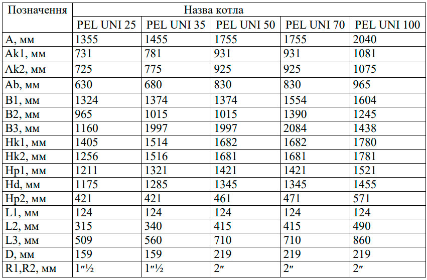 Котел має конструкцію, в основі якого високоефективний теплообмінник, що характеризується видовженою нагріваючою колоною з комплектом труб димових каналів та ефективною камерою згорання.