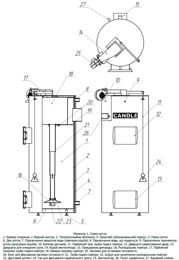 Котел циліндричного типу Candle Time 50 кВт підходить для всіх типів житлових, виробничих та промислових приміщень з індивідуальної системою опалення. Цей котел характеризується унікальним способом згорання дров, де процес горіння проходить тільки у верхньому шарі палива.